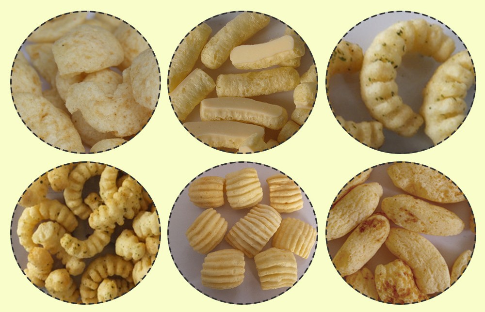4.Expansion: When the molten material is extruded through the die, the sudden change in pressure causes the molten mass to expand rapidly and form a porous structure, thus achieving the expansion effect. During the expansion process, moisture, gas, and other components in the material are rapidly released, resulting in a loose and porous product.