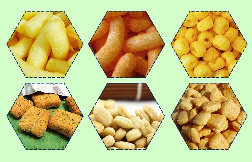 Puffed snacks are divided into fried snacks and non-fried snacks. Fried snacks are usually made by deep-frying at high temperatures, using a large amount of oil to make the food crispy. Non-fried snacks use processes such as baking, puffing, or air-drying. Although they are not fried, they usually need to be dried to achieve a crispy texture. Below, we will introduce the two production processes and flows.
