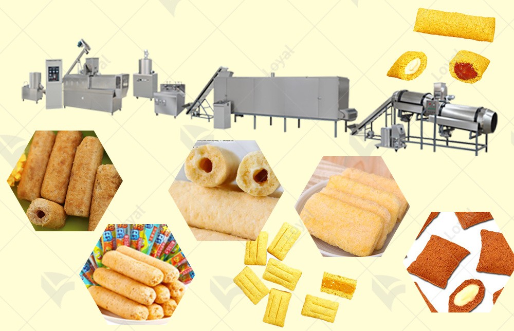 Ordinary puffed foods primarily use corn, rice, and flour as their main raw materials, supplemented with starch and other grain powders. These are then extruded and puffed to create simple puffed snacks with different shapes and textures. Whether it's dried rice and corn-based puffed foods or fried puffed foods made primarily of flour or starch, each new type of extruded puffed snack can dominate the market for a period initially. However, newer varieties quickly emerge and take over the market, or the product is gradually eliminated by the market due to inherent taste flaws or price limitations. Only a small percentage of puffed food products survive the test of time and maintain long-term market acceptance and recognition; filled rice crackers are a prime example.